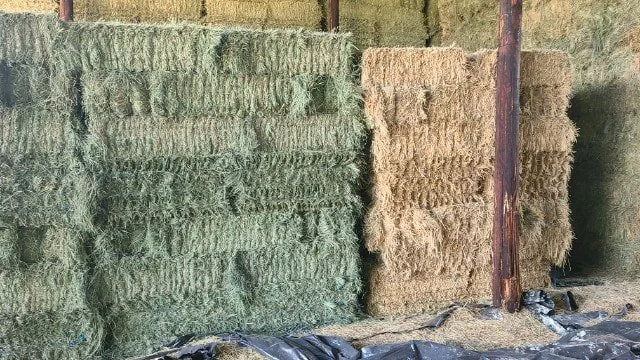*Below pictures show 2022 2nd cut that was just baled in August. It is a stunning green leafy cut. All of our hay is tarped and stored in a barn to preserve quality and color. Never any sun bleaching!